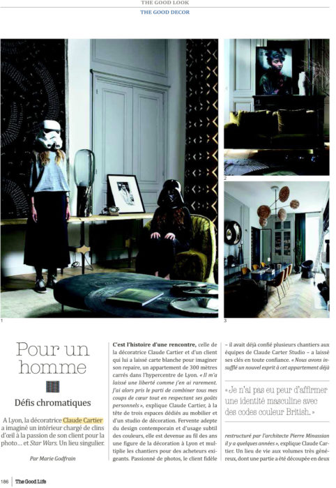 A lyon, la décoratrice Claude Cartier à imaginé un imaginé un intérieur chargé de clins d’oeil à la passion de son client pour la photo…et Star Wars. Un lieu singulier.
