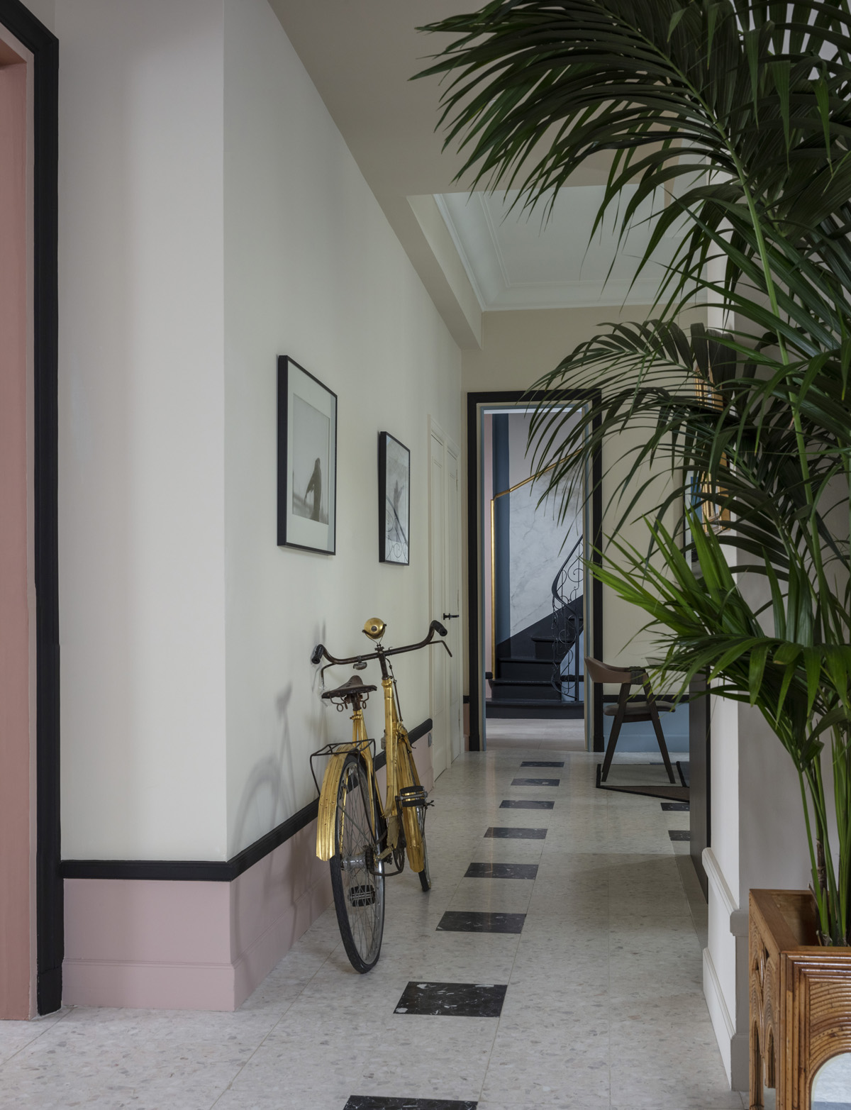 Des volumes magistraux, des atouts ornementaux exceptionnels délivrent dès le départ l’écriture future d’un scénario Arty. Ces codes décoratifs forts tels qu’un sol en terrazzo très graphique, des cheminées époustouflantes seront des atouts incroyables.
