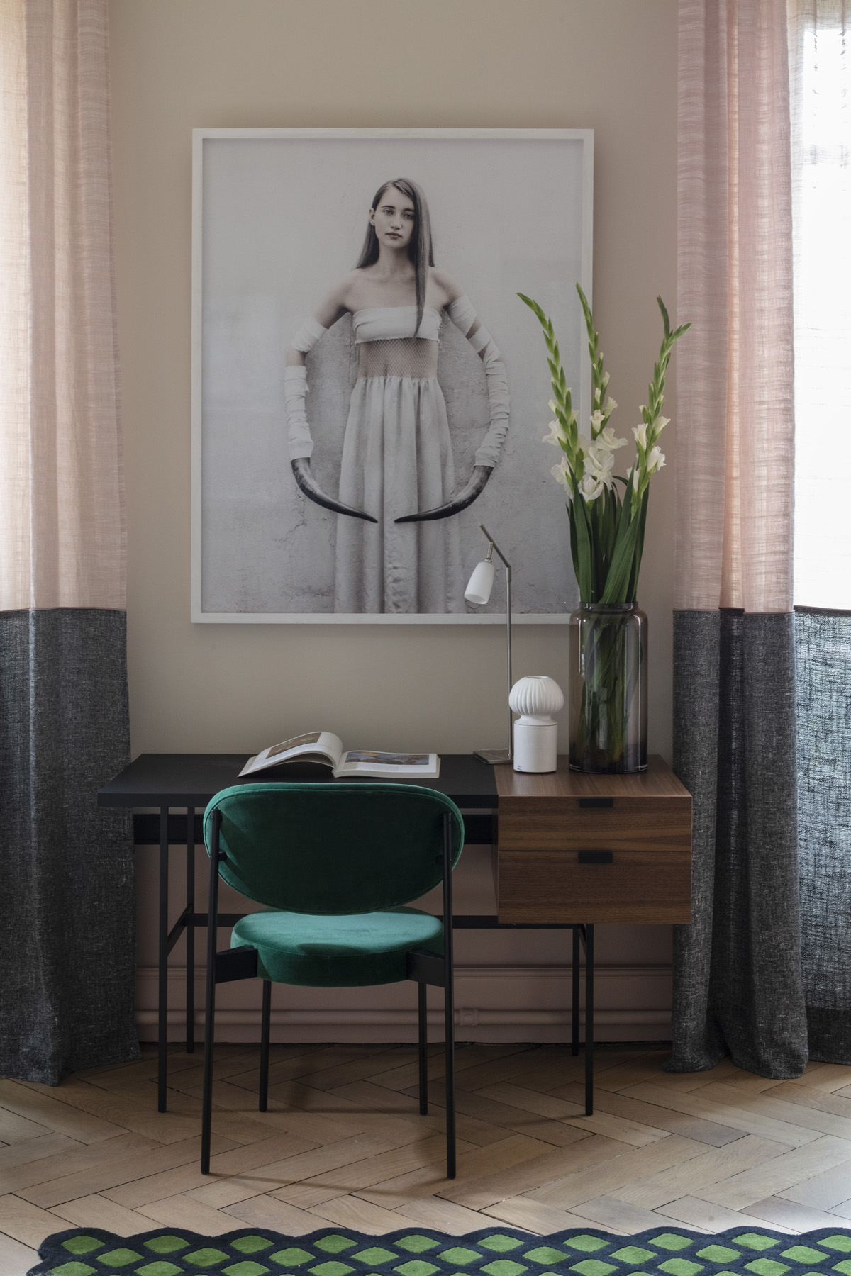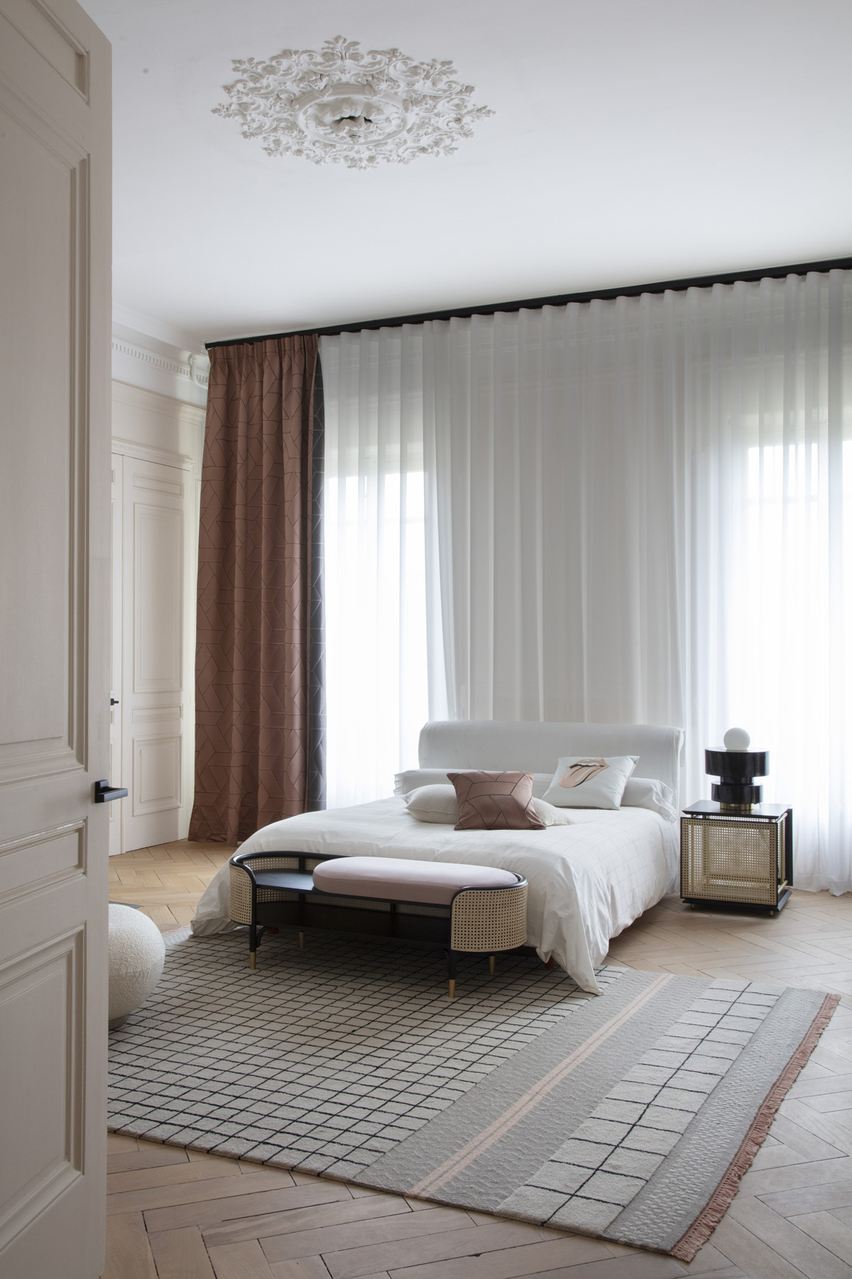Forcément il fallait les respecter mais aussi casse ces codes pour ne pas s’embourgeoiser de façon ennuyeuse, c’était le risque. La personnalité et la passion de la cliente pour l’art et le design va nous aider. Chaque pièce va se construire comme un scénario répondant à une oeuvre photographique ou picturale. Quel plaisir d’imaginer des chambres répondants en clin d’oeil aux photos d’Andrea torres Balaguer, invitée d’un dernier Inside Gallery avec la galerie In Camera!